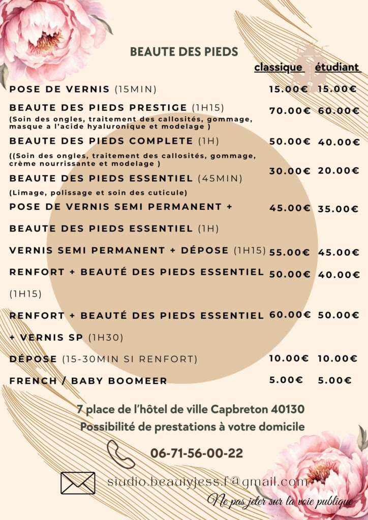 Situé à Capbreton, l’ institut de beauté Beauty Shop Bio propose divers soins d'onglerie. Vous rêvez d'un moment de détente, pensez au soin des mains ou des pieds.